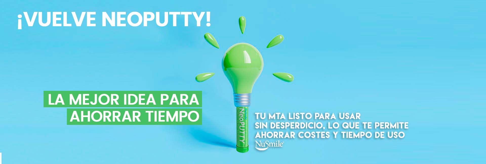 NuSmile NeoPUTTY es un MTA bioactivo ya premezclado. Gracias a esto ahorras un tiempo considerable ya que no tienes que invertirlo en preparar la mezcla, puedes dedicar el tiempo exclusivamente a realizar el tratamiento.